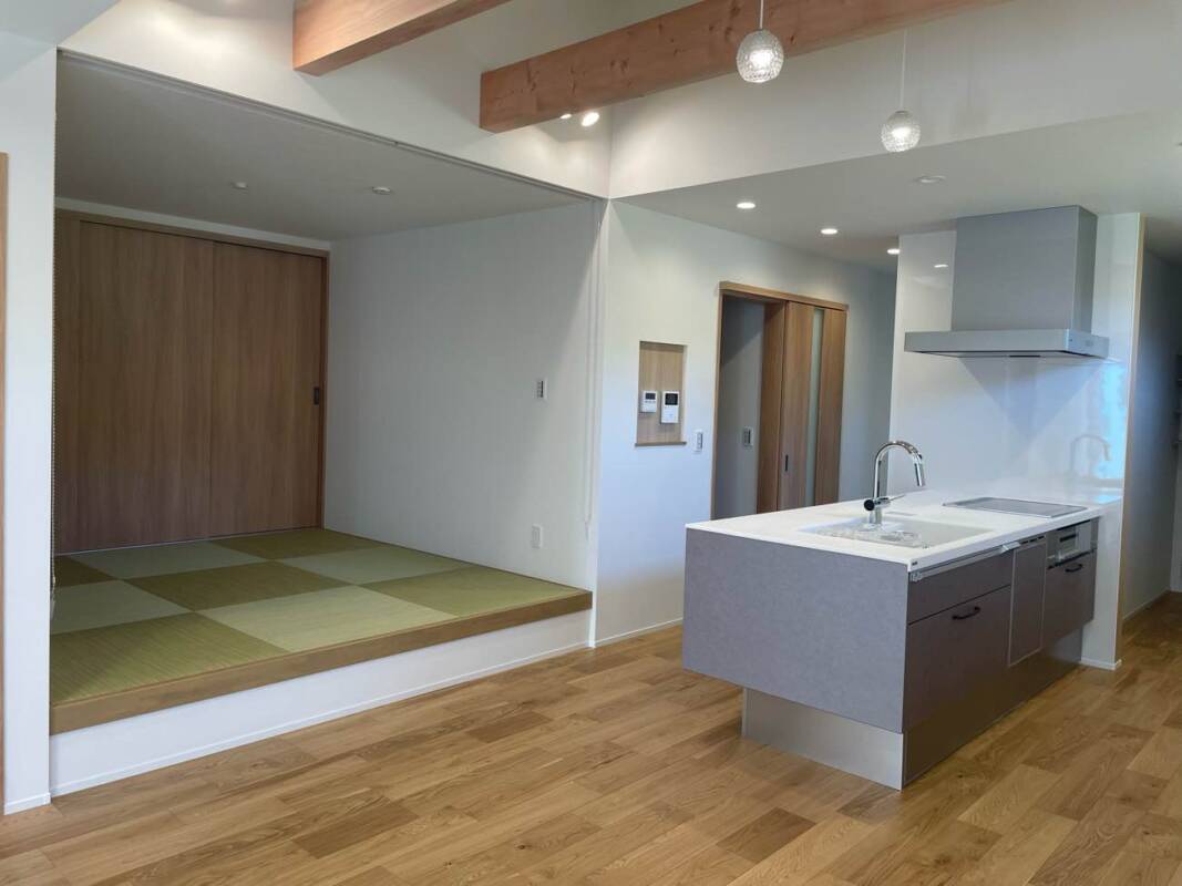 広がりを感じる勾配天井のLDKに、小上がり和室をプラス。