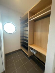 空間をゆるやかに仕切りながらも、家族の会話が自然に生まれる間取りになっています。